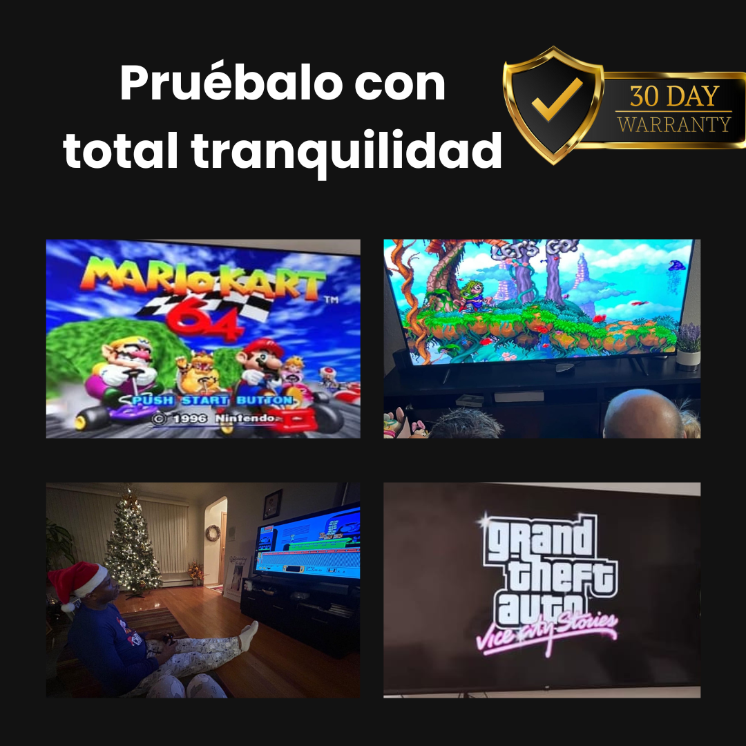 Disfruta miles de juegos legendarios en increíble calidad 4K, desde GTA hasta Mario, Tekken y Dragon Ball.